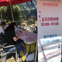 2018부천국제만화축제에서 시민들이 직접 만화를 주제로 체험하고 즐길 수 있는 돗자리만화방, 물도서관, 대형젠가, 영화상영, 미션수행 등 시민체험프로그램 파크존